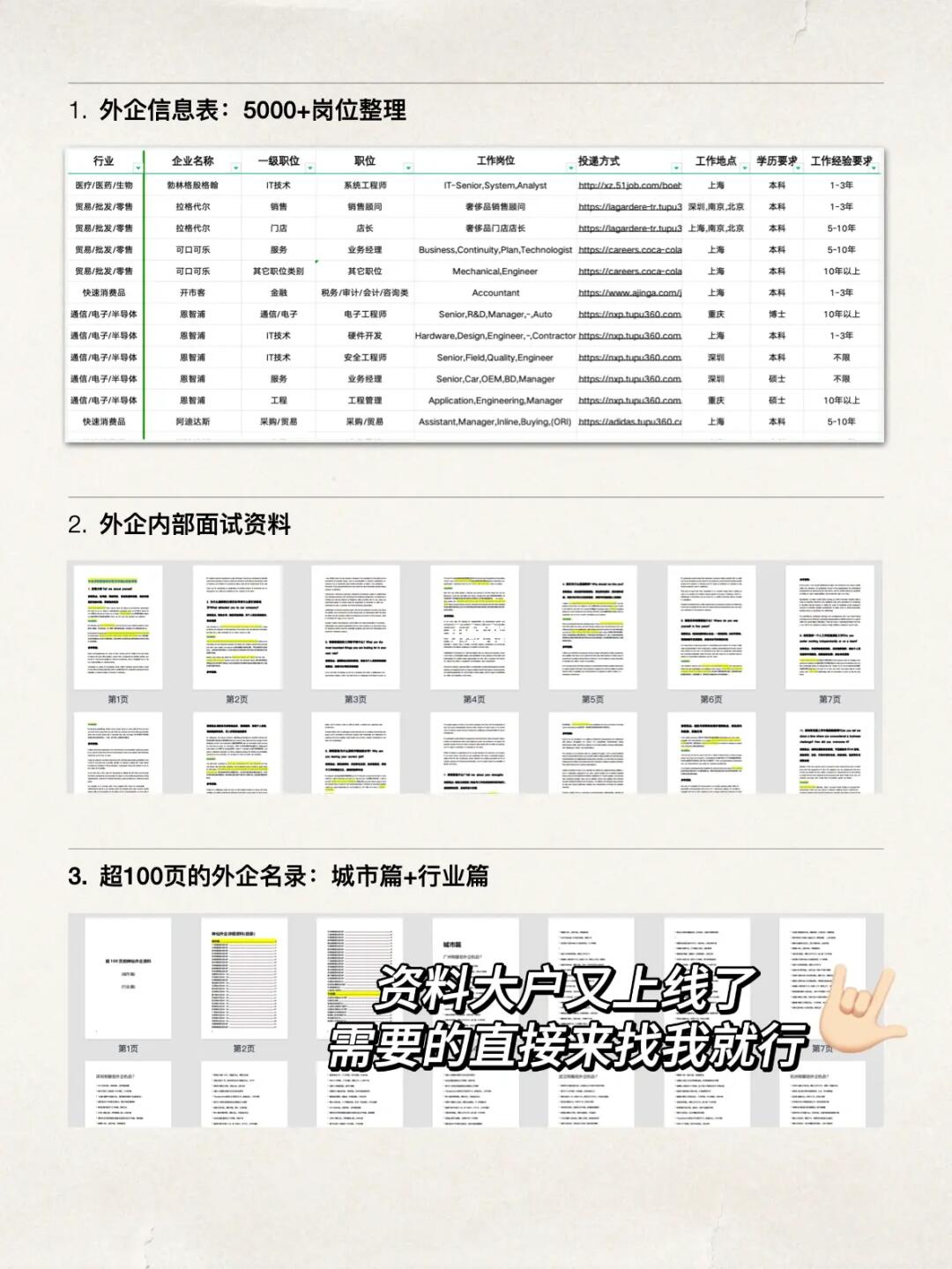 🔎p3应大家要求还整理了一些外企内部资料,包括有5000+外企信息、内部英文面试资料、100+页的外企名录,需要的直接来找我就行