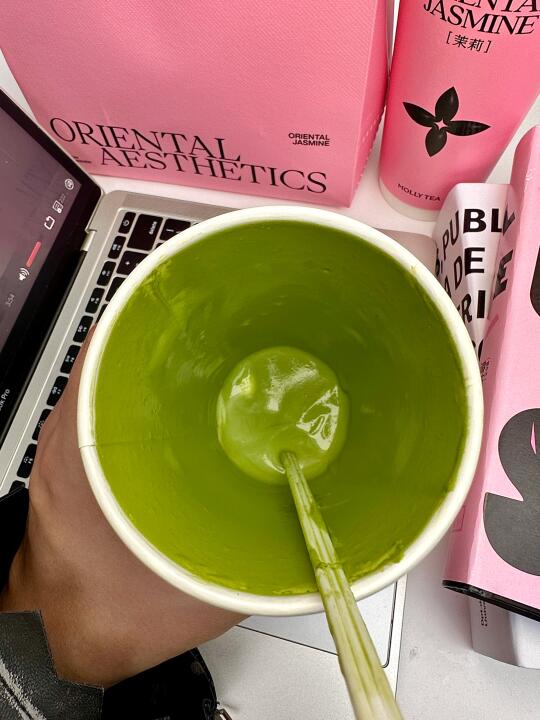 茉莉针王,少冰、7分糖(可加抹茶芝士) 茉莉针王本身口感就很清爽甜润 春天尤其钟爱这口鲜灵的茉莉花香!! 加份抹茶芝士,咸甜搭配真的拒绝不了! 喝完杯壁都挂着抹茶,不要浪费了!!