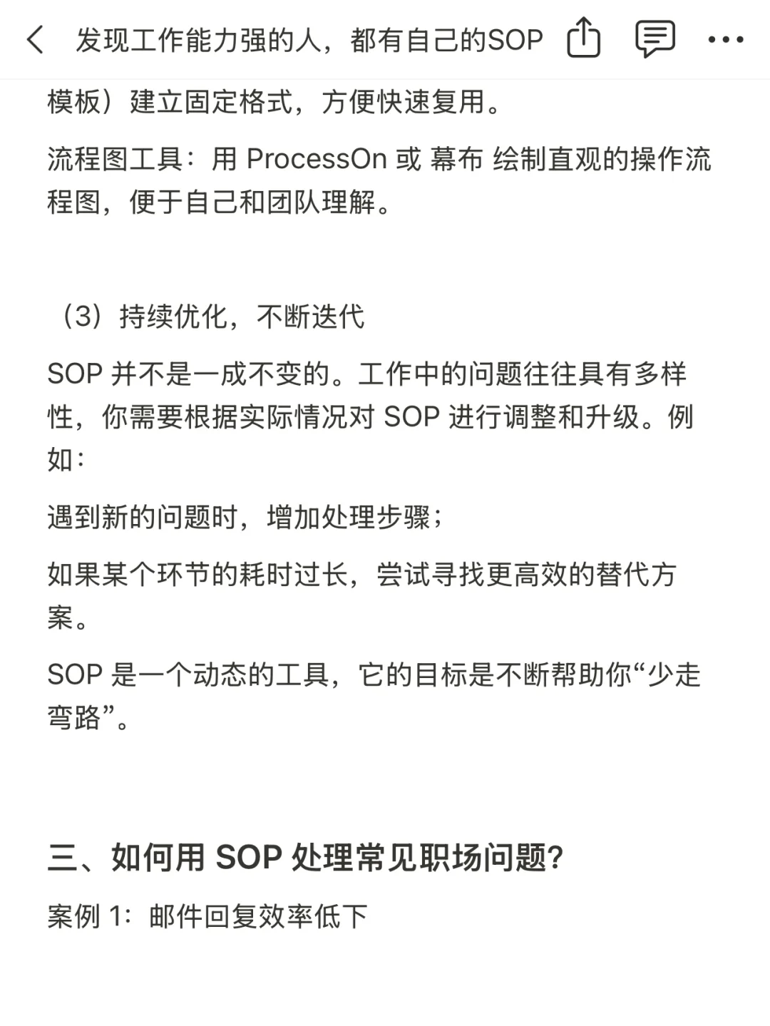 如果你发现自己在工作中总是手忙脚乱,或者经常遇到类似的问题、但总是从头摸索,那么SOP能很有效地改变你的效率和结果。