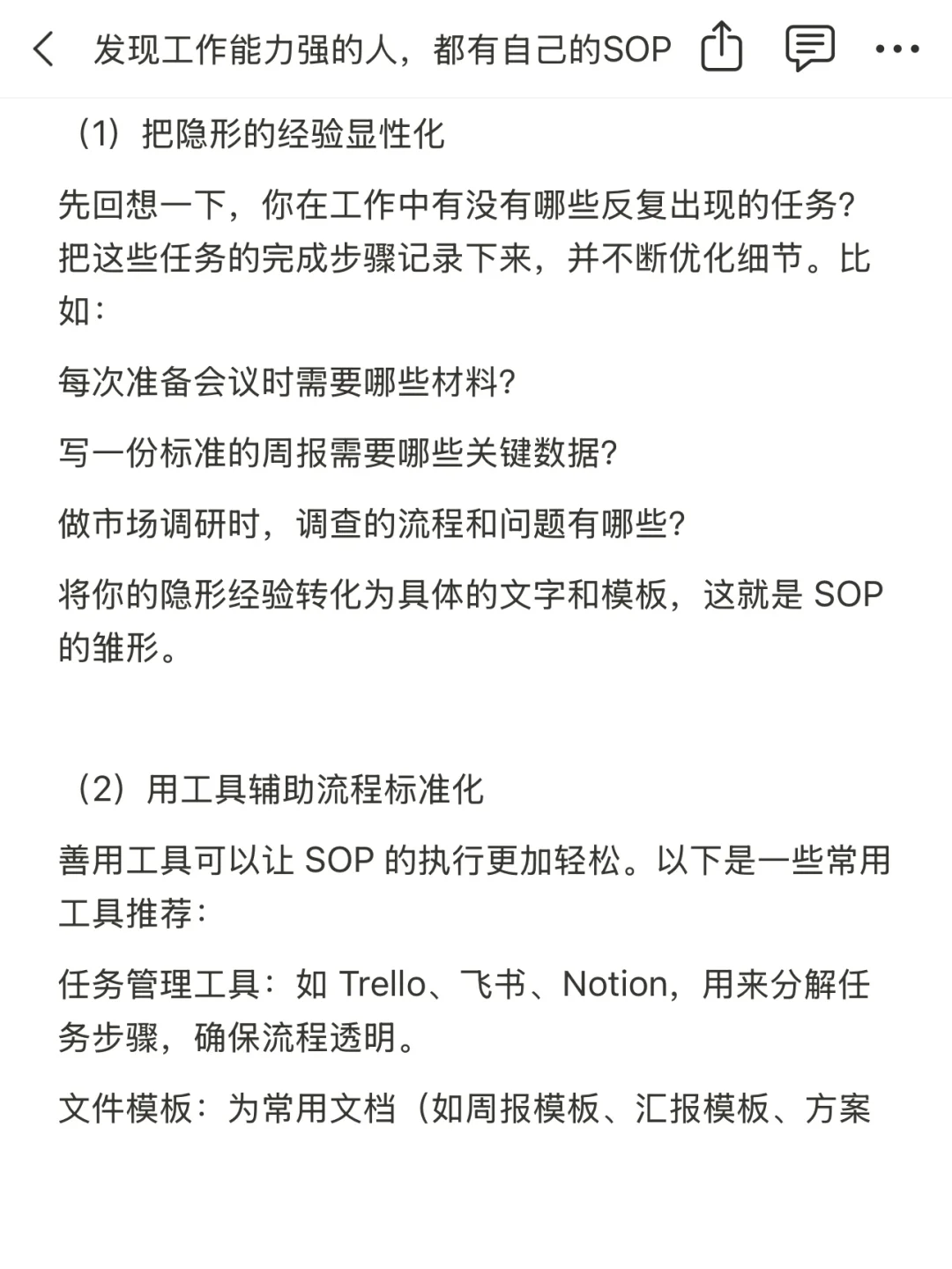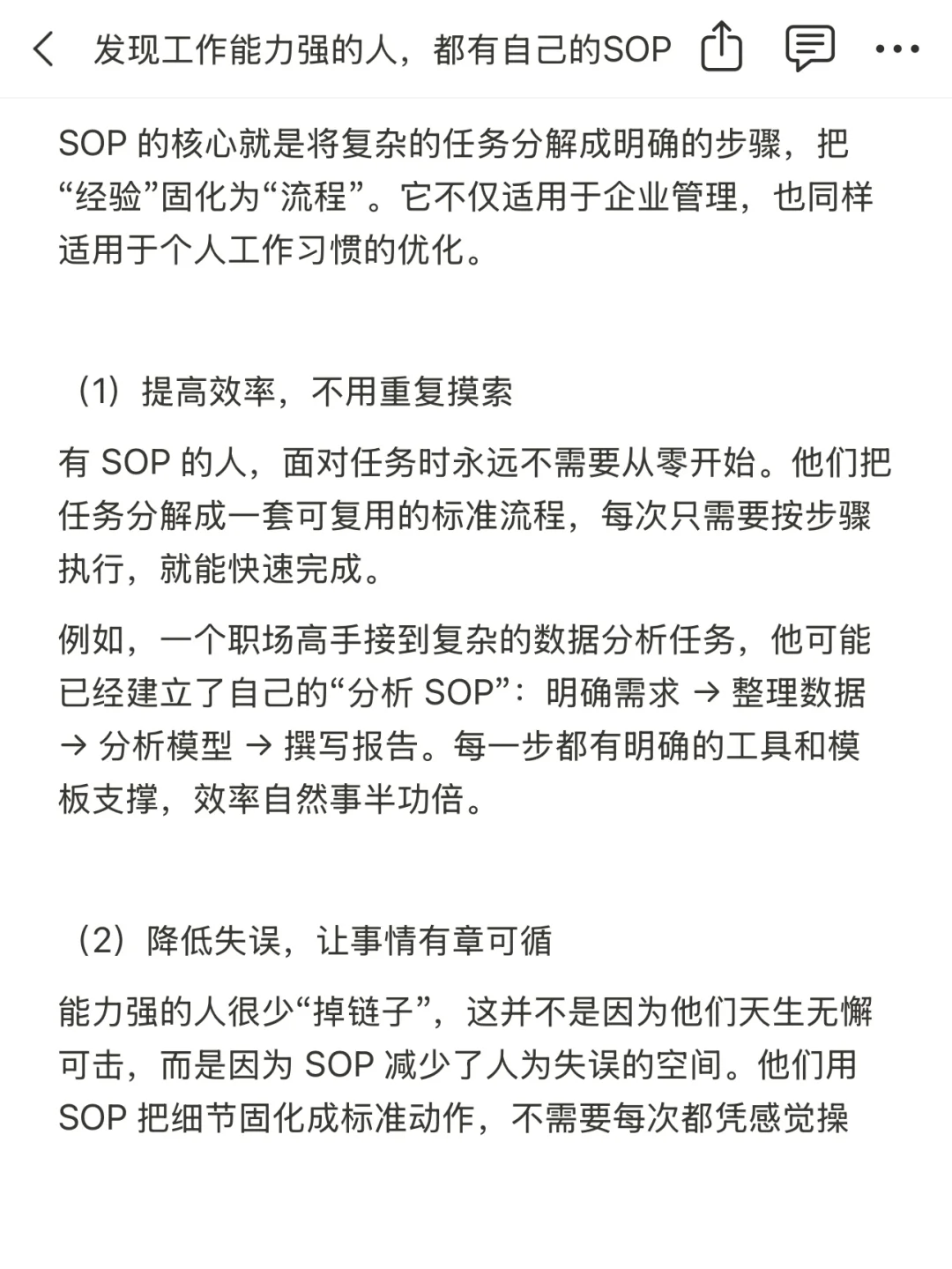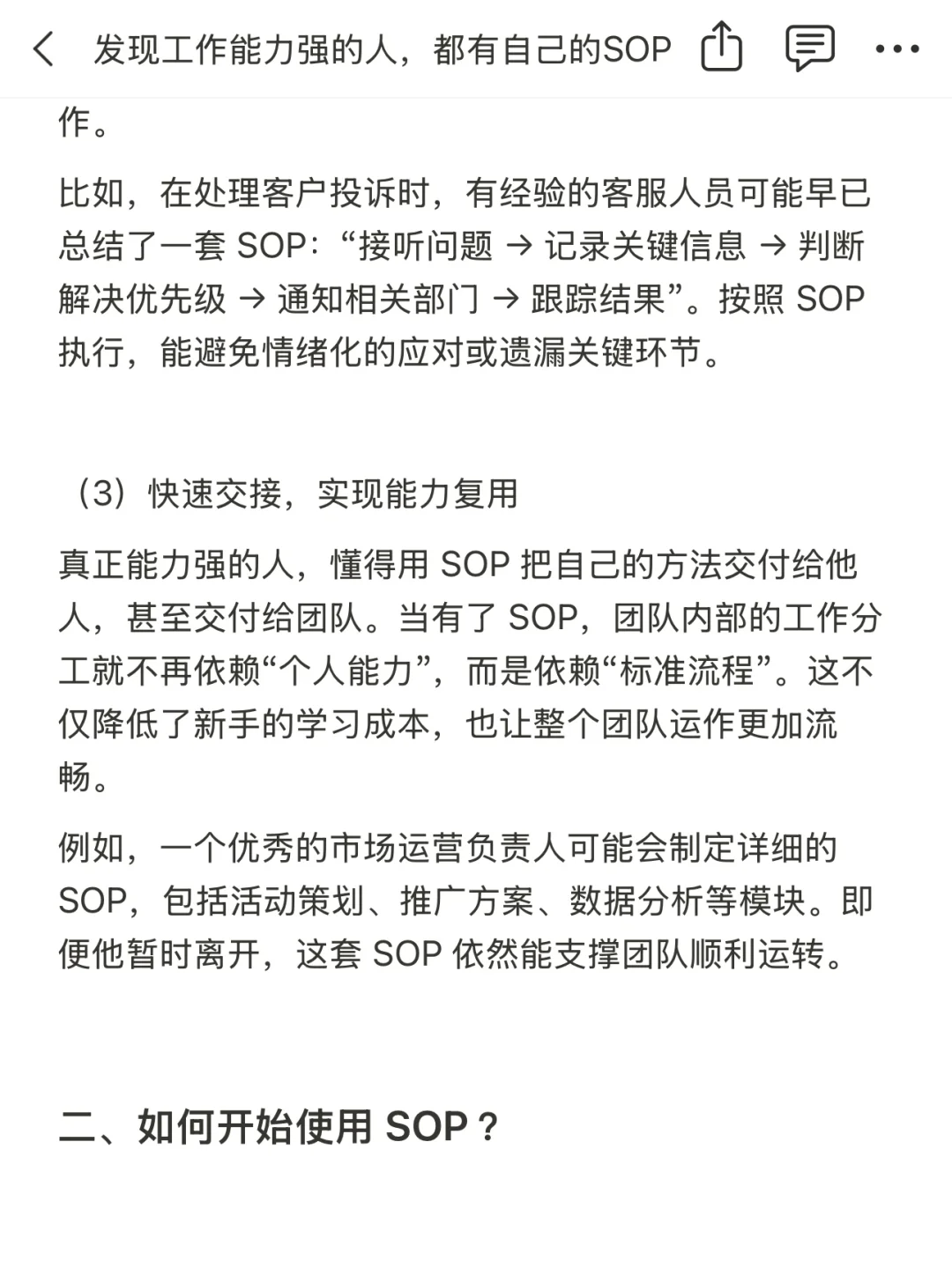 工作时间越长越发现,工作能力强的人,除了靠专业能力和努力付出,还有一个关键——SOP(Standard Operating Procedure,标准作业流程)。
