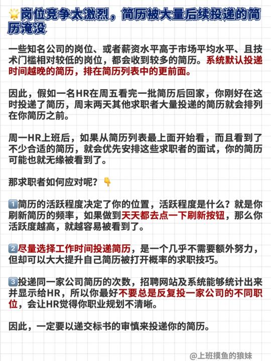 2⃣️你投递简历的时间不对,大量简历把你的简历淹没了,HR根本看不见你的简历(🔎图中有详解)
