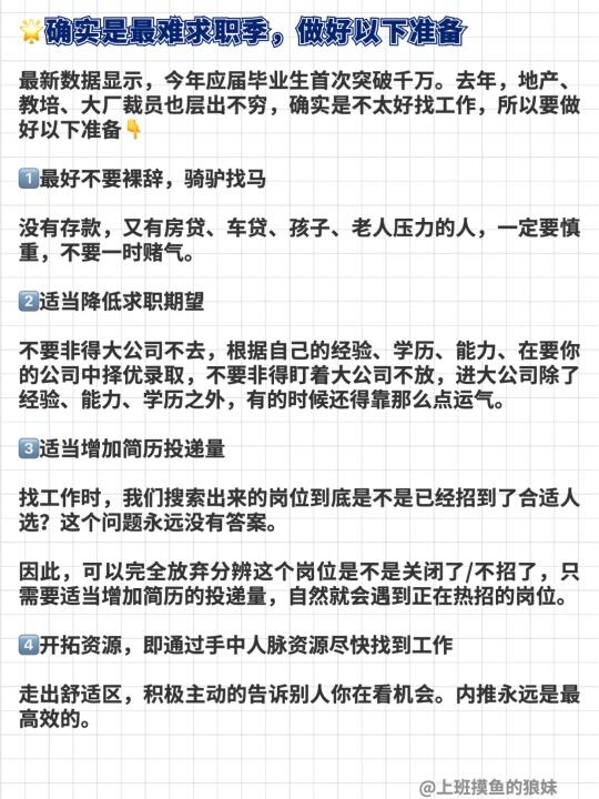 4⃣️你想的没错!工作就是越来越难找了,所以要做好一些准备: