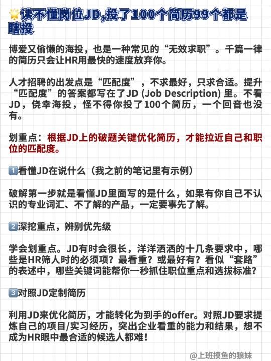3⃣️还没有看懂岗位JD就投了简历,无效海投,容易没有结果