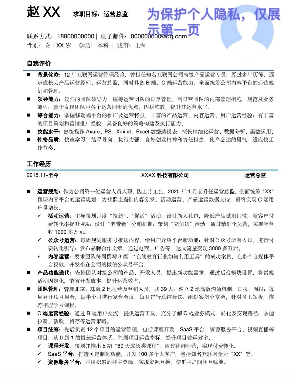 不写没有假大空的废话,不写与职位不相关的信息。