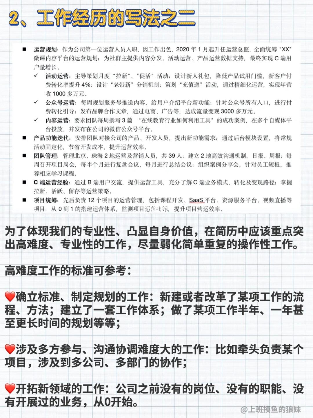 🔓具体指的是每一条工作职责的写法,要具体量化。