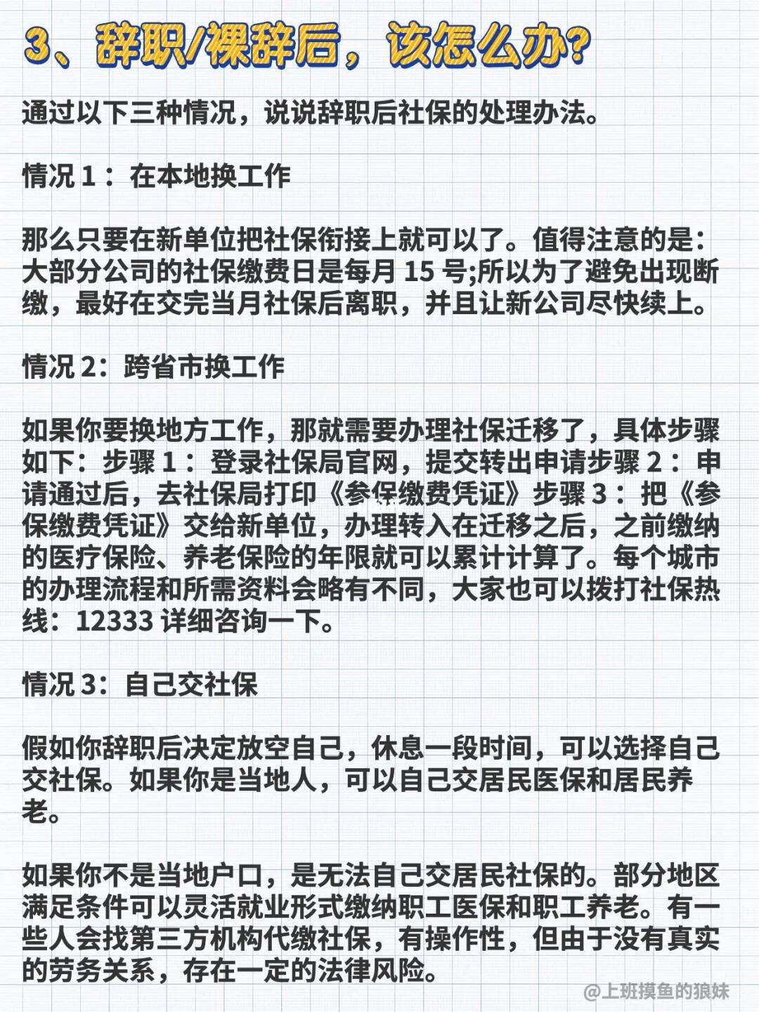 图4⃣️辞职/裸辞后,社保该怎么办?
