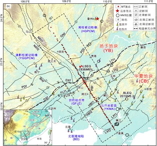 [三R] 四会-吴川断裂带:  这是一条规模宏大的北东向断裂带,斜贯整个粤西地区。它的北端延伸至清远市西北部,如清新区西北部和阳山县一带,该断裂带活动性相对较弱,但仍是区域重要的构造边界。