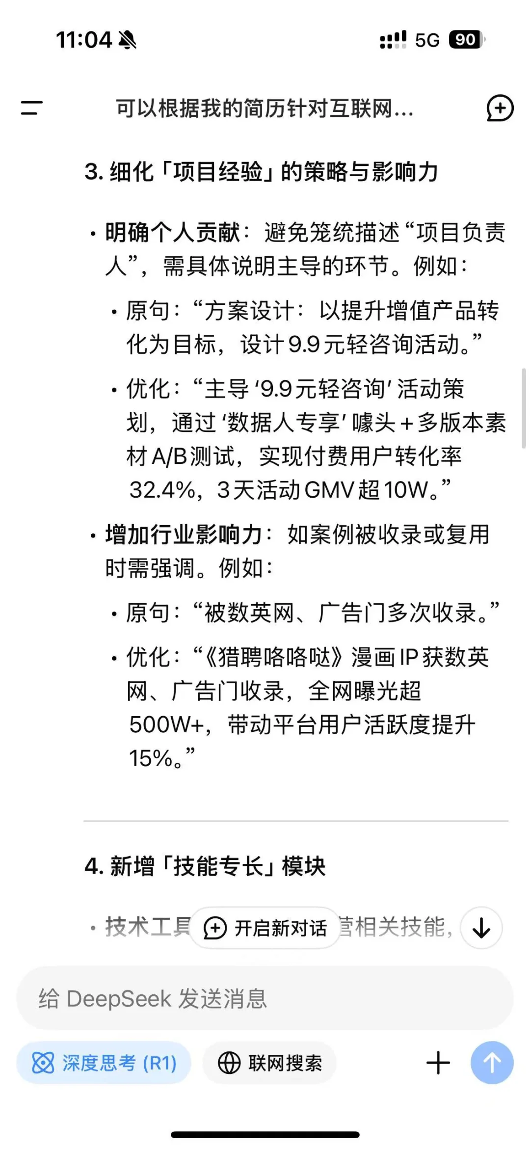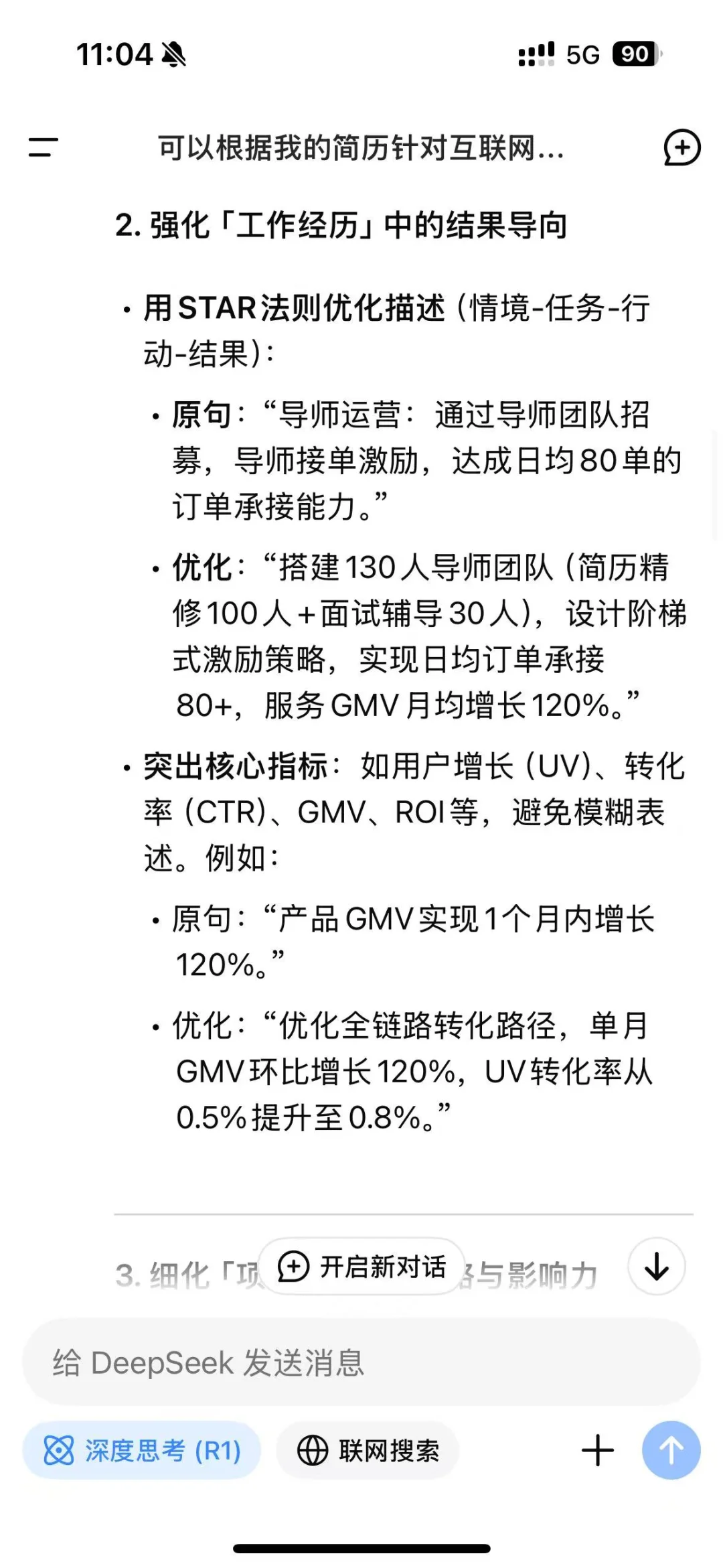 3️⃣在DeepSeek上面量化成就,用数据说话
