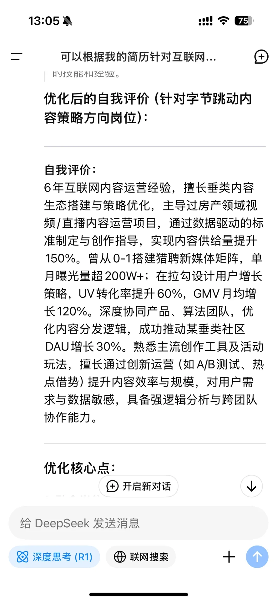 5️⃣在DeepSeek上面提取亮点,优化自评