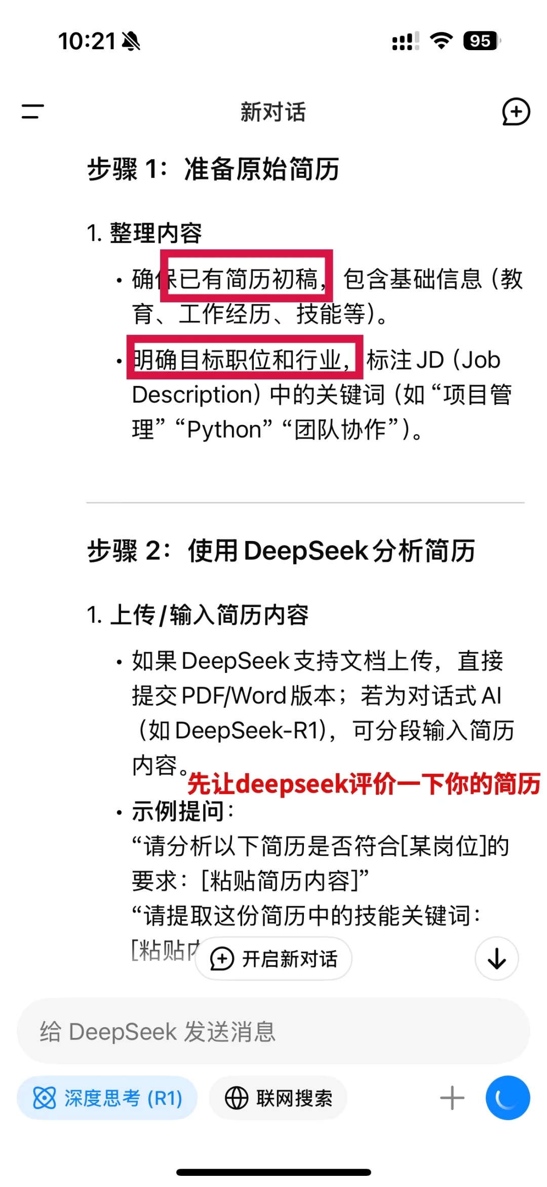 4️⃣在DeepSeek上面添加关键词,匹配职位