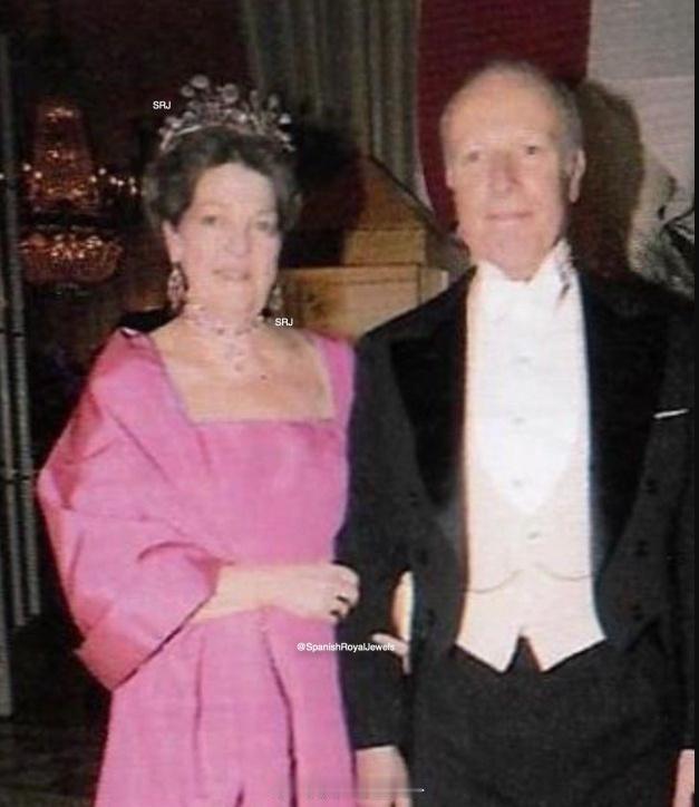 介绍一件蛋白石王冠和配套choker,它们已经有一百多年的历史,最开始是奥尔良的玛丽嫁给丹麦国王克里斯蒂安九世小儿子瓦尔德玛时娘家给的嫁妆 玛丽珠宝不少,4个儿子中是长子阿基继承了这套蛋白石,长媳玛蒂尔德有一张糊糊的佩戴照。阿基两口子只有一个孩子:小瓦尔德玛,他没结了婚但没有孩子。因为长期住在巴黎跟奥尔良的亲戚比较熟,于是大手一挥送给了巴黎伯爵小女儿山塔尔。山塔尔戴过几次,choker2009年最后一次出现在她闺女吉尔蒂娜身上 感觉王冠张牙舞爪的,choker又会戳脖子