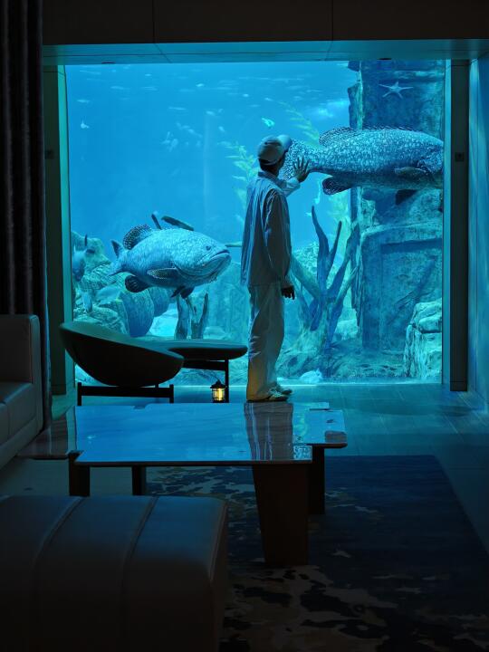 住海底客房看鱼群游过