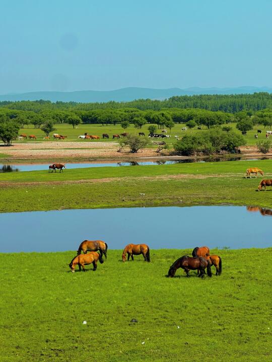 当城市在暑气里蒸腾成模糊的剪影 我总想钻进北纬48°的翡翠褶皱里 呼伦贝尔的夏天 是上帝打翻的调色盘 是风与草叶合写的十四行诗 刚结束这场六日漫游 迫不及待想把这片草原的呼吸与心跳 说与你听 📅 六日漫游地图 D❶ 海拉尔→金帐汗部落→莫日格勒河→额尔古纳 D❷ 额尔古纳湿地→白桦林→恩和俄罗斯民族乡 D❸ 恩和→兴安神鹿园→莫尔道嘎 D❹ 莫尔道嘎→最美边防公路→黑山头 D❺ 黑山头→呼伦湖→满洲里 D❻ 满洲里→猛犸公园→呼和诺尔湖→海拉尔 🌟 9个封神级体验|草原的浪漫暴击 ❶ 额尔古纳湿地看日落|站在观景台等橘色天际线漫过脚尖,那一刻心跳与风声同频 ❷ 莫日格勒河九曲十八弯|航拍视角下,这条草原血脉正流淌着金色的波光 ❸ 兴安神鹿园|苔藓递到驯鹿掌心的刹那,触碰到大兴安岭最温柔的呼吸 ❹ 森林小火车|老式绿皮车厢载着穿越时空的浪漫,窗框里装着流动的油画 ❺ 黑山头骑马追日落|马背颠簸中,夕阳正从地平线坠入我的牛仔帽檐 ❻ 呼伦湖畔发呆|当水鸟掠过镜面般的湖心,整个世界安静得能听见心跳 ❼ 访牧户体验|挤牛奶时溅起的奶花,是草原馈赠的最甜美的见面礼 ❽ 穿越草原腹地|当越野车碾过无人区的草浪,方知何为天地苍茫 ❾ 恩和木屋等黄昏|俄罗斯族老奶奶烤的列巴,混着日落的味道 🍃草原𝑻𝒊𝒑𝒔: 👔穿搭:白/黄/红色长裙+牛仔帽+马丁靴,昼夜温差大记得带外套 🐎必带:驱蚊液、保湿护肤品、防晒霜、墨镜 🚗交通:推荐包车深度游,本地司机能带你解锁地图上找不到的秘境