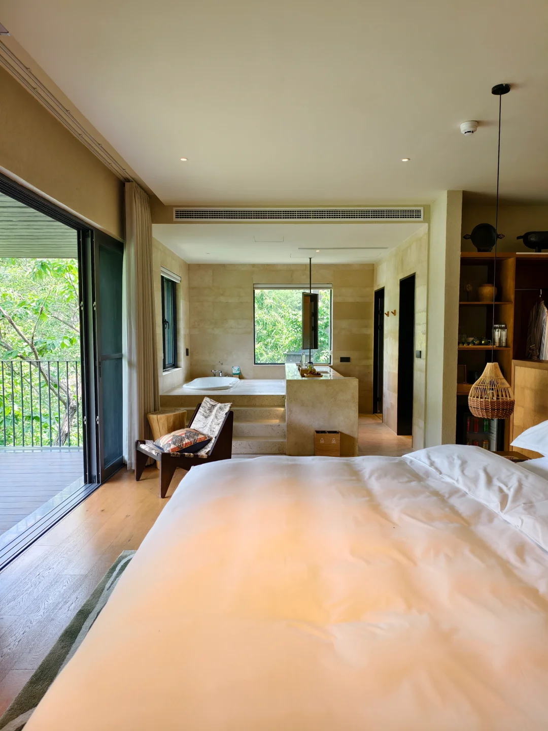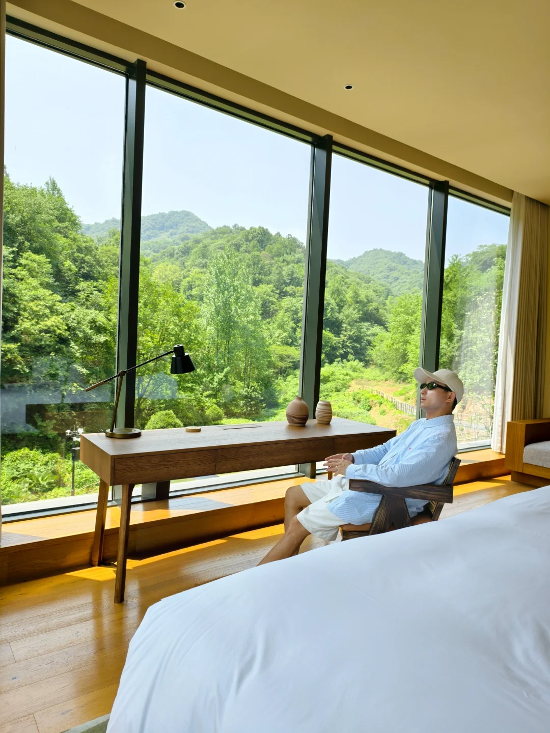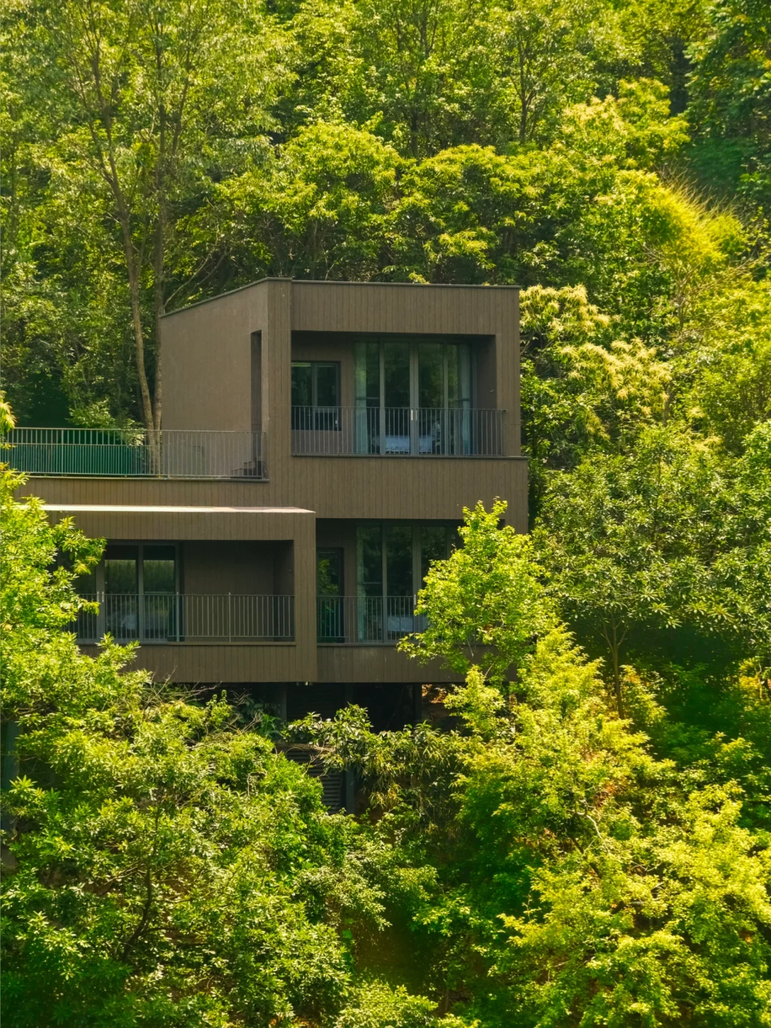武汉向西两小时车程的褶皱里 藏着一本被银杏叶书签标记的立体诗集 风从银杏谷的褶皱里淌来 拨开晨雾 推醒半山腰的房子 那些林雾弥漫的章节 湖光潋滟的隐喻 以及空间与自然的留白 这里 是夏日私藏的温柔乡 每一缕风都裹挟着自然的低语 每一片叶都摇曳着隐世的诗意 船屋傍水而居 树屋藏于林间 湖畔、林间别墅被葱郁绿意簇拥 与自然相融无间 湖畔蜿蜒的小径 是我与自然对话的秘径 每一步 都踏着岁月的温柔与自然的呼吸 风 携着湖水的清新与林间的芬芳 让人不知不觉沉沉睡去 酒店还有几棵百年银杏树 现在绿叶盎然 治愈又养眼 不敢想象秋天满树金黄到底会有多美 已经开始忍不住期待了 这里真的符合我所有对于“裸”的生活方式的想象 尤其喜欢这里的裸心农场 可以耕种、嬉戏、休憩 真的过上了理想中 依山傍水而居 自耕自种、自给自足的日子 当夜幕低垂 星空如织 我独坐于露台 任由月光洒满肩头 突然发现很多事情 其实并不必执着 活得快乐 比活得漂亮重要得多 这里 是自然哲学的生动诠释 “隐”是与自然共生的智慧 所以 人真的应该偶尔暂停 在这里 我遇见了最真实的自己 感受到了“返璞归真” 也邂逅了那份久违的松弛与自在