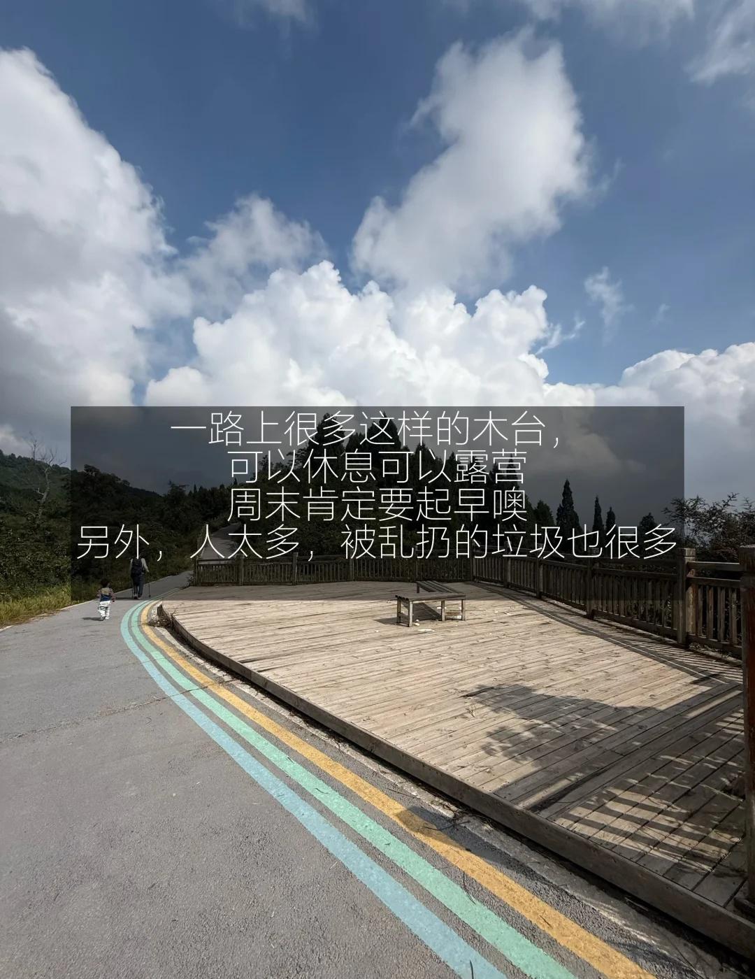 今日龚家山已回|避雷攻略就看这篇! ⚠️⚠️必须避雷: 1️⃣ 通往灵开寺的山路比较窄,错车困难,坡度较大,建议新手司机导航“听风里”或“云顶牧场笙美度假村Q”,走行云路双车道宽又平,直达观景台!(后面这个是网友建议,我们是走的灵开寺,队友会车我看见咯对新司机是具体) 2️⃣ 建议周末尽量早点,避开人多时段 3️⃣ 步道途中的厕所特别脏,建议别打开(别问我为什么知道),山上观景台有公厕 4️⃣ 步道的一路无补给,在山顶观景平台上有卖小吃,烤红薯,面条,抄手,烤串儿的小摊,咖啡车 ✅ 蹦蹦一家的体验分享: 1️⃣ 灵开寺一龚家山观景台全程步道,适合轻徒步,带娃带老人没有压力; 2️⃣ 一路上有很多凳子可以休息。随处都是景,俯瞰江水和远山很壮观,据说天气好时有云海; 3️⃣ 有免费露营区(但周末人多),记得自备齐食物,山上补给少。机车跑山 成都周边游 户外徒步爬山 轻松徒步路线