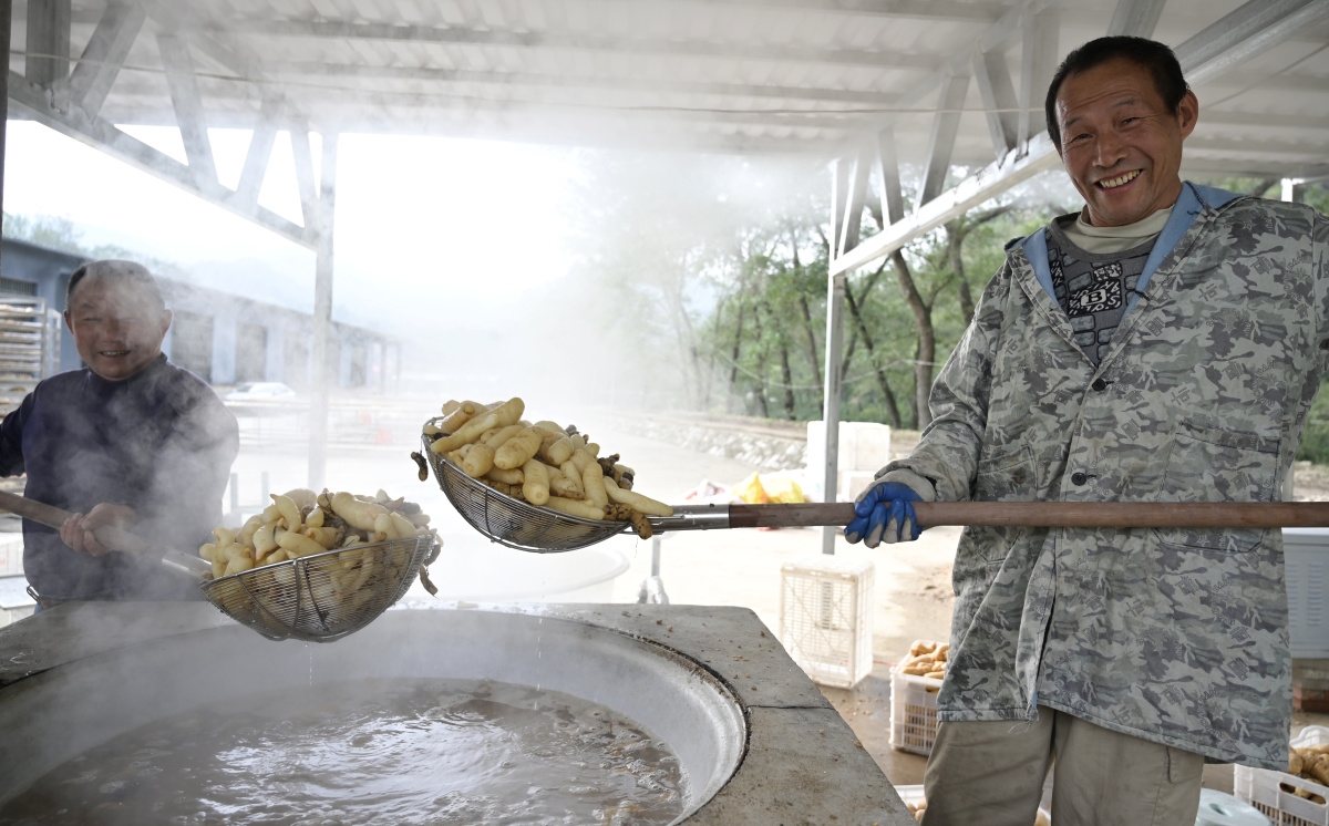 冲洗、蒸煮、晾晒……10月27日,在信阳市新县卡房乡牛冲村,处处洋溢着丰收的喜悦,农户们正忙着将新鲜采收的天麻进行初加工。近年来,卡房乡充分发挥当地自然禀赋与优质栎树林资源优势,积极推行“龙头企业+合作社+农户”的联动模式,同步发展大棚集中种植与林下仿野生种植。