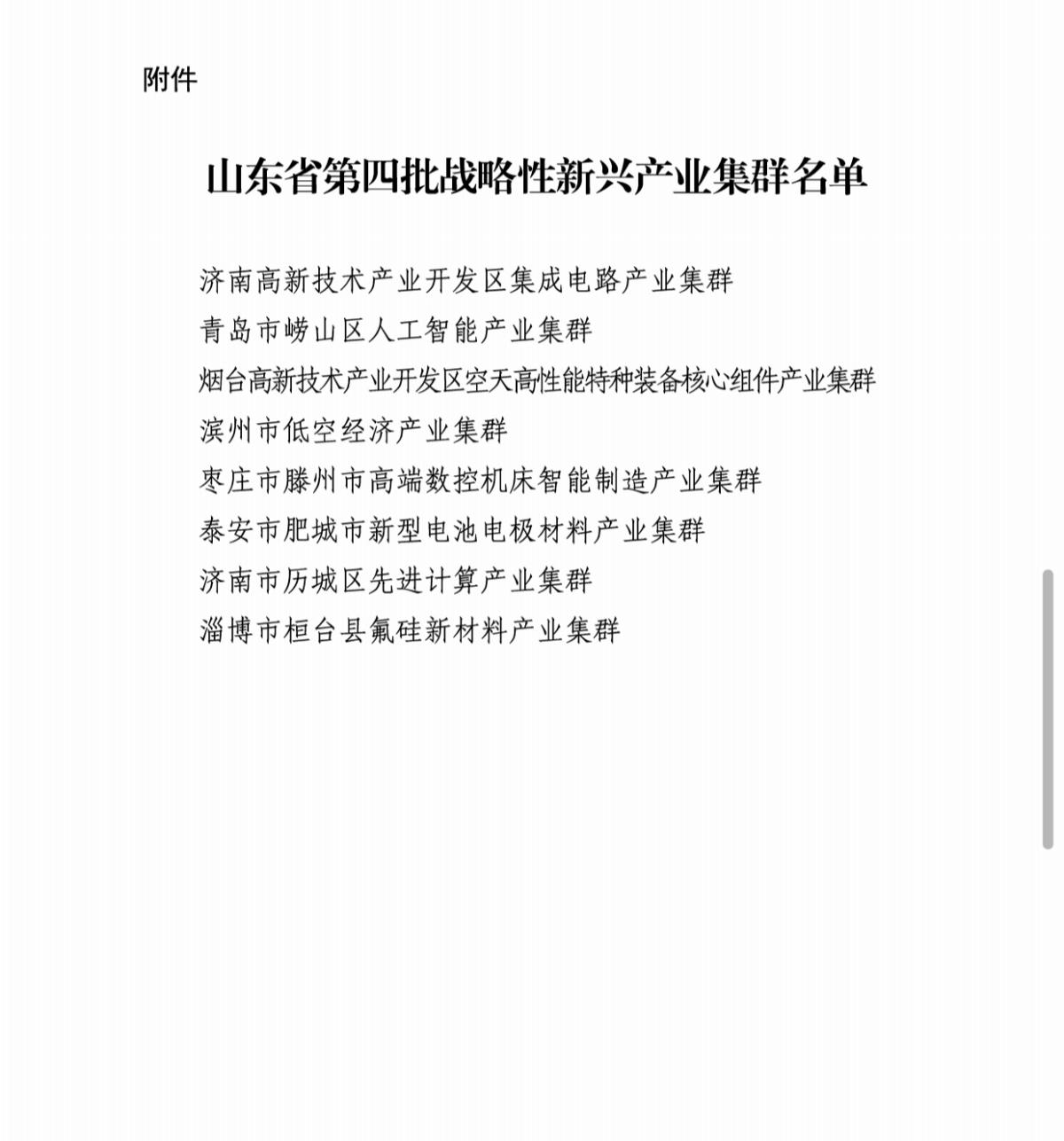 10月28日记者从市发展改革委获悉,山东省第四批战略性新兴产业集群名单公布,认定济南高新技术产业开发区集成电路产业集群、淄博市桓台县氟硅新材料产业集群等8个集群。