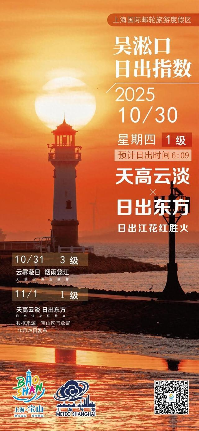 [吴淞口日出指数]10月30日1级天高云淡×日出东方