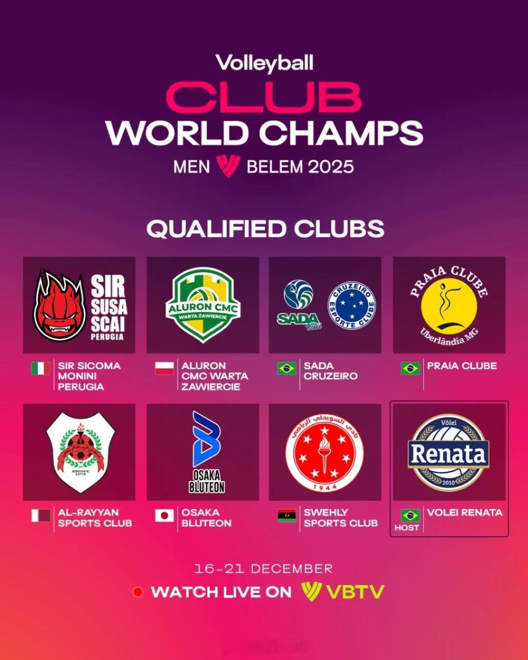 排球世界官宣:2025女排世俱赛 ( )和2025男排世俱赛 ( )都在巴西举行