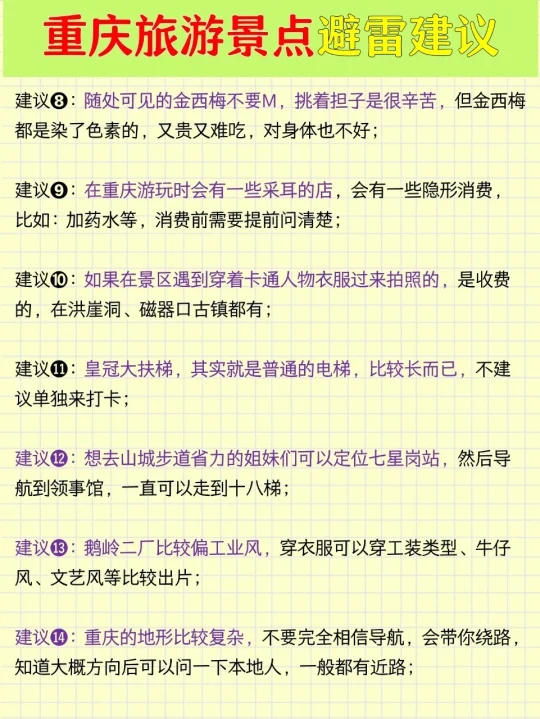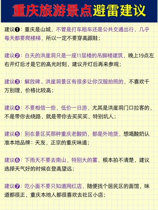 ‼️重庆是山城,不管是打车租车还是公共交通出行,几乎每天都要爬楼梯,所以一定不要穿高跟鞋;