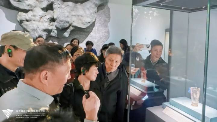 10月27日,一场跨越年龄的城市文脉Citywalk,在杭州博物馆、城隍阁、中山路南宋御街展开。浙大城市学院老年大学以“宋韵文化探古今”为主题,在考古专家、浙大城市学院考古学系主任杜正贤教授的带领下,30余名老年大学文化主题研学班学员与浙大城市学院学生文旅研学社的大学生志愿者携手同行,深入杭城博物馆街区,在一步一景的沉浸式体验里触碰城市人文历史的宋韵脉络,开启了“文脉传承・润学杭城”的全民学习周研学之旅。