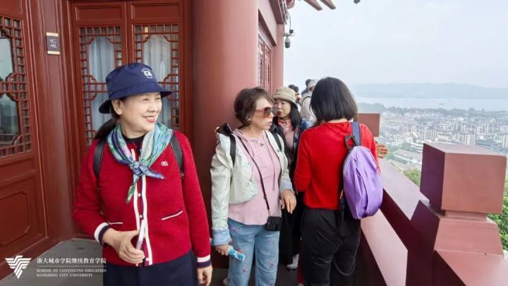 城隍阁矗立于吴山之巅,是俯瞰杭城世界文化遗产西湖全景、品读杭城古今的标志性建筑。重阳佳节临近,老年大学研学班的学员们一同登高望远,在城隍阁凭栏远眺,西湖的碧波山色与杭州城的现代楼宇交相辉映,古今风貌在此无缝衔接。