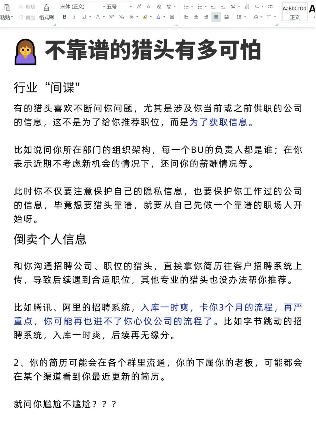 ⚠️但我绝没有说猎头不好的意思,优秀的猎头能帮助你职场有很不错的职位发展,甚至是贵人✅