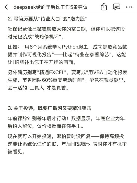 🔻精华版: 1. 想找工作,就要放弃"躺平"的幻想 2. 写简历要从"待业人口"变"潜力股" 3. 关于投递,既要广撒网又要精准狙击 4. 面试必杀技:把空窗期变加分项 5. 最后底线:接受"降维打击" . 🔻完整版见图 . 不仅是个职场博主,分享真实有效的信息;还会不断分享成长干货,帮助大家提升自我! .