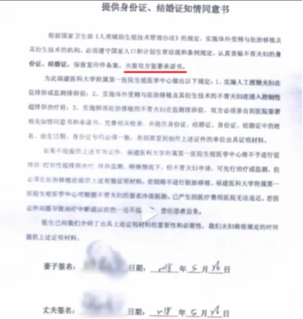 被告医院代理律师林柏东介绍,相关事项需要两夫妻共同与医疗机构签字、确认,并提供相关的证明文件,手续才符合相关的法律法规和管理办法。李女士一人前来,不符合相关规定,因此医院只能拒绝。