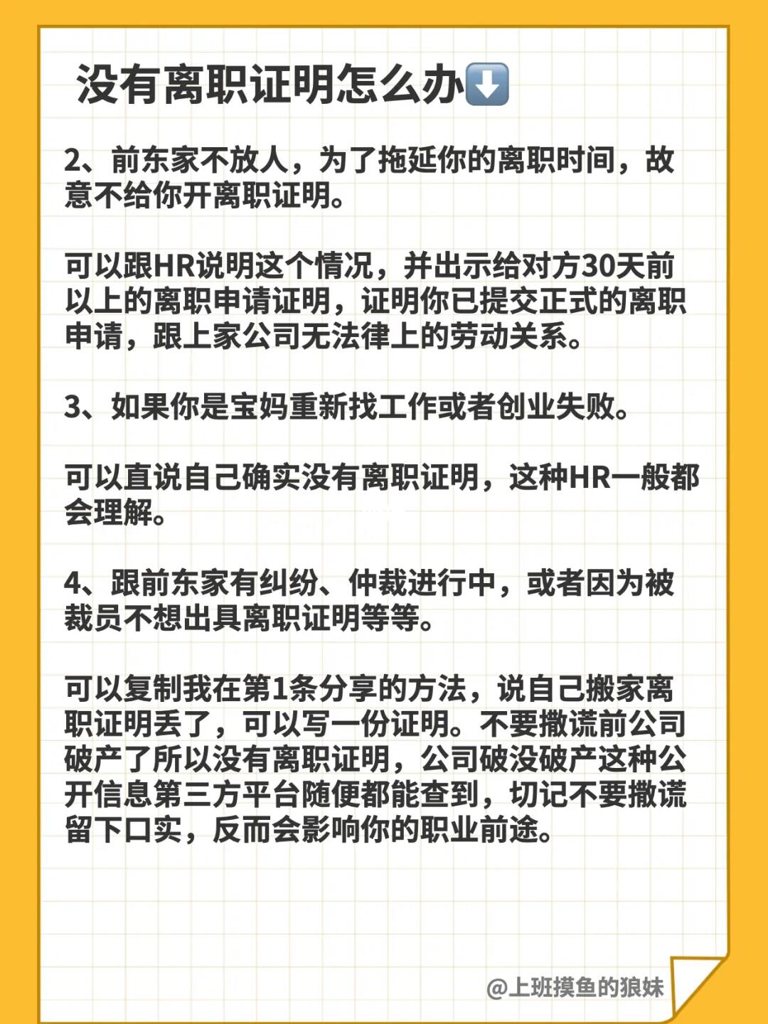我知道很多姐妹因为各种原因手里没有离职证明,但入职新公司又问你要。那在这种情况下,我们应该怎么应对呢?