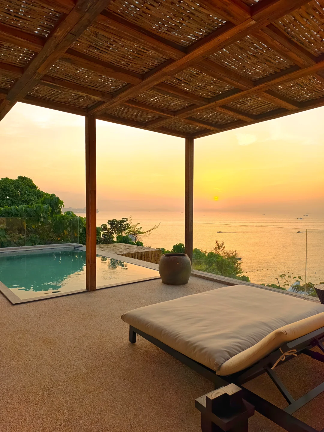 📍深圳苫也·柚柑湾避世度假酒店 车拐过第十三个弯道时 山突然向海俯身 我带着都市褶皱的心跳 跌进柚柑湾的呼吸里 山风穿林而过 带着草木清气 把时间都吹得松散 推开窗的刹那 湿润的海风卷着晨光涌进来 这里的海,蓝得不像话 赤脚踩上银白沙岸 粒细软得像被潮汐打磨了千万次 海水澄澈如璃 波光潋滟处 藏着一整个南中国的温柔 游艇划开海面时 身后拖曳的浪痕 像天空写给大海的情书 暮色四合时 建筑师的巧思开始显影 悬挑的露台如镜面般倒映云霞 无边泳池与远海连成克莱因蓝的缎带 看夕阳把深圳的天际线染成暖橘色 在这里 终于读懂海德格尔说的「诗意地栖居」 「原来真正的避世 不是逃离人间 而是让万物都慢下来等你」