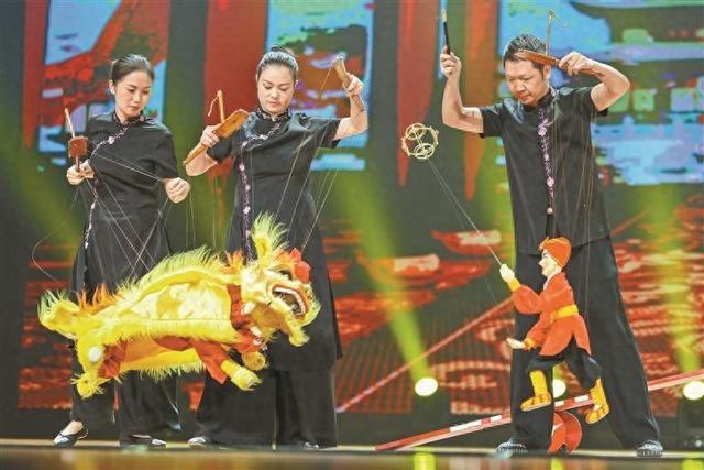 平阳木偶戏保护传承中心的提线木偶《舞狮》与《异域风情》,展现了900年传承历史的非遗魅力;四川省大木偶剧院的《千里共婵娟》将大木偶书法与长绸舞完美融合,尽显“世界罕见的大木偶艺术”风采;深圳本土院团深圳木偶艺术剧院的《中华运动会》,以提线木偶串联古今体育项目,致敬全国运动会。此外,广东木偶剧院的《长绸舞》、陆丰皮影戏的《哪吒闹海》、新物种实验剧场桌面偶剧《垃圾流浪记》(片段)以及上海戏剧学院的《成长的烦恼》(片段)等节目,让传统与创新在舞台上碰撞出奇妙火花,为观众呈现了一场视觉与文化的盛宴。