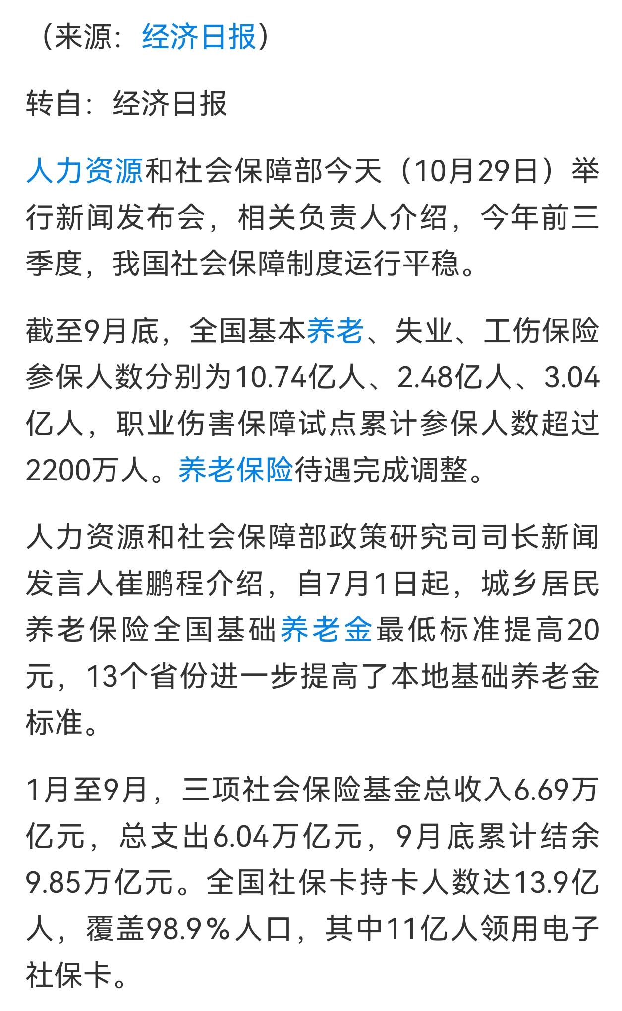 2025年城乡居民基础养老金上调传来了最新消息,人社部10月29日召开新闻发布会