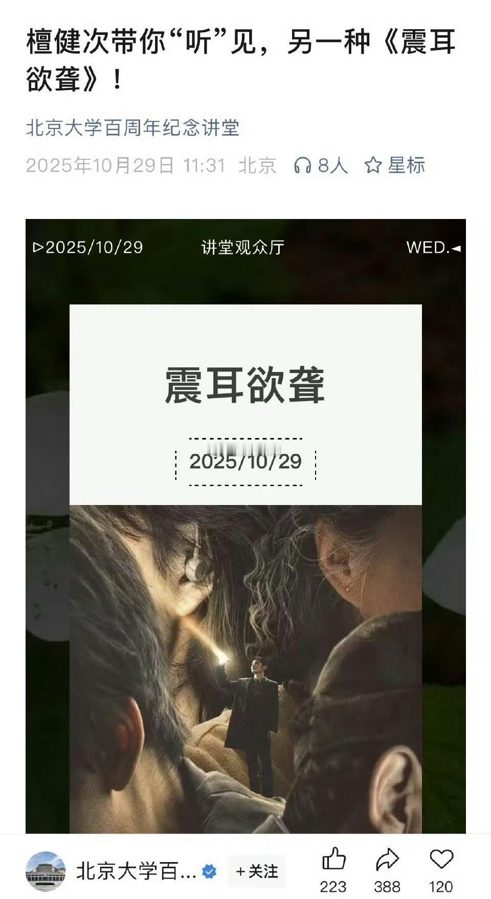 北大百周年纪念讲坛上出现了檀健次的震耳欲聋,公众浩上也有!