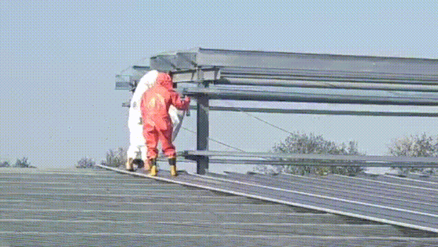 9月10日,潢川县工业大道一厂房员工发现屋檐上有马蜂窝,随即拨打119电话求助,消防救援人员到场并仔细勘察后,立刻穿戴好防蜂服,利用杀虫剂将蜂窝彻底清除。