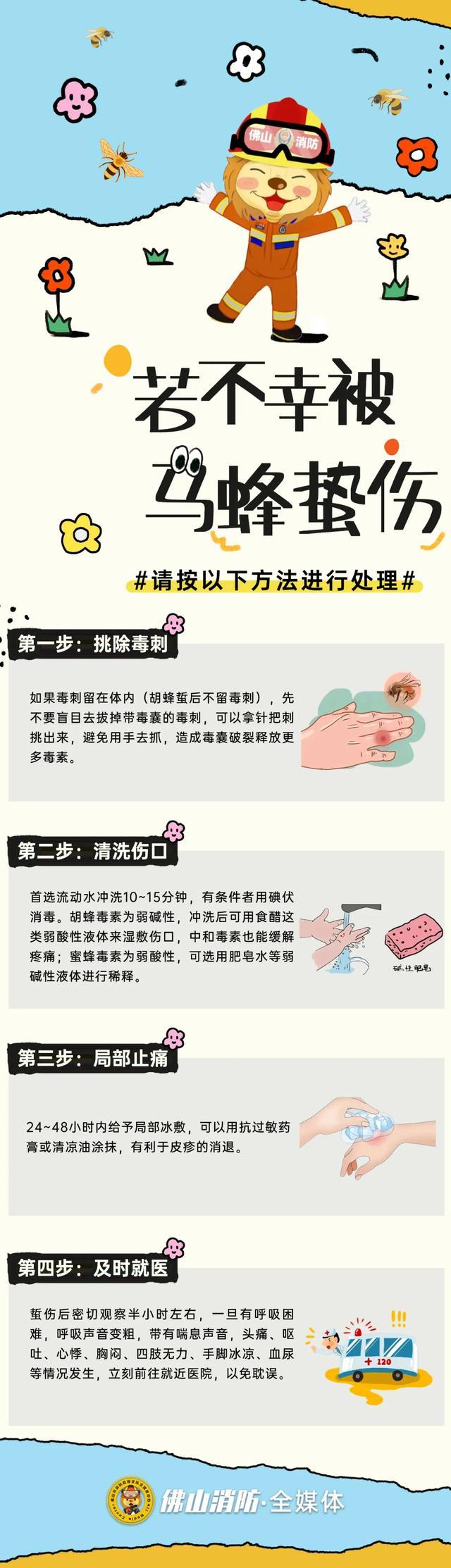 据深圳市第三人民医院医生介绍,患者送到医院时,头面部、背部多处被蜇伤,出现大小不等的蜂团,伴有瘙痒、胸闷等症状。医护人员立即为其将胡蜂的尾针拔出,并进行补液,消炎、抗感染等对症处理。目前患者生命体征稳定,肝肾功能等正常。