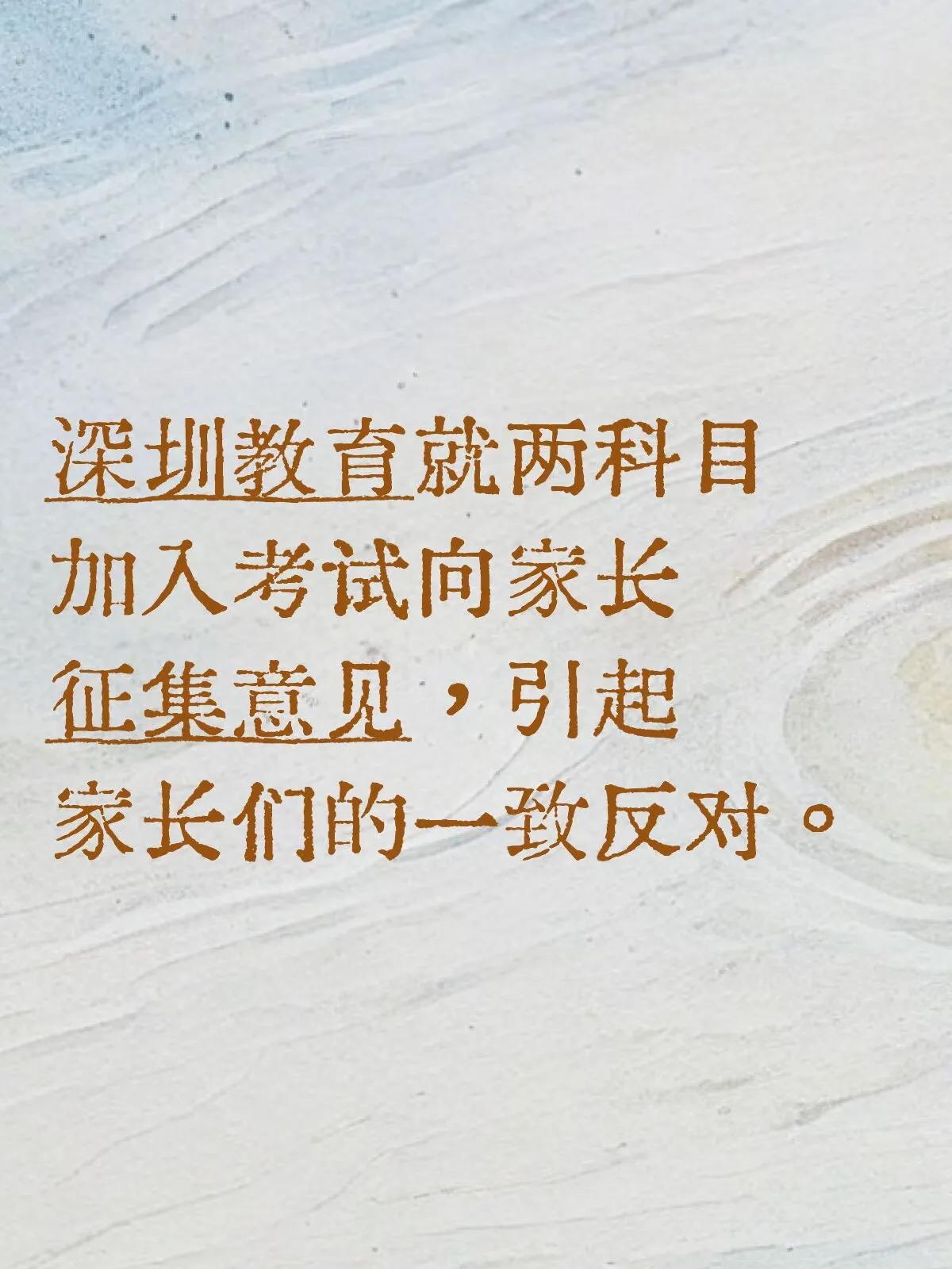 深圳初中学考将新增2个科目? 引起大批家长的强烈反对! 表示已经够卷够累了 最近深圳教育向社会征集意见 想把“信息科技”和“艺术”。纳入初中学考范围 瞬间激起强烈反对 教育局的初衷可能是为了素质教育,全面发展 但对于学生和家长来说 在一直强调减负的大环境下 增加2门考试 无疑是增加负担 而且这两门课 平时都没怎么学过,却要去考试,真没必要 通过大家的反应,已经很多人去投诉 这个征集意见大概率是不行了 大家觉得呢? 应不应该增加信息科技和艺术的考试 深圳初中规划 深圳初中生