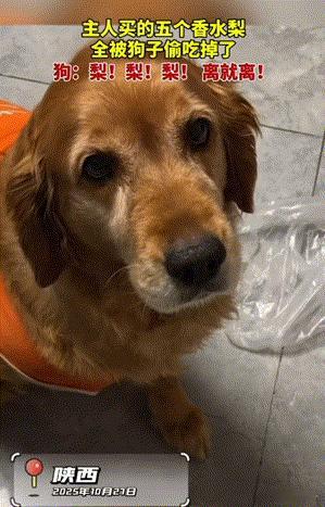 笑不活了!陕西,女子买了几个香水梨回到家就放桌子上后,就去洗澡了。结果洗完发现连梨带袋子都不见了,这就奇怪了她四处找,结果把屋里全部找完也没有见一个梨。于是灵机一动想到肯定是狗子,就问它:五个梨,去哪里,你是连核带把一起吃进去了吗。它就是一言不发,还表现的非常委屈巴巴的样子。狗子:都是长嘴的谁吃不是个吃? 女子下班回家的路上看到有卖香水梨的,她很喜欢吃这种梨子,但是很少见就买了几个。到家后随手就放在了餐桌上,狗狗也凑热闹来看了一眼,可是就走了,女子还给它说:不是给你买的大鸡腿别看了。 过了一会女子就去洗澡了,大概二十分钟吧就洗完了。打算洗了梨子尝尝看看是否正宗,可是当她走到餐桌前时发现桌子上干干净净的连个毛也没有。瞬间她懵了怀疑自己是不是没有放在这里,就蹲了下来往桌子底下看了一眼。 还是啥也没有,然后她就转遍了整个屋子寻找她心心念念的梨子,可是无果。于是她突然想到,狗子怎么现在这么安静呀,绝对是做了亏心事不敢出来面对了。要像之前主人这猫大动静,它早出来凑热闹了。 女子就去狗窝把它扒拉出来,质问道:我梨子呢,你快给我交出来,还在窝里发现了梨的袋子,这下实锤了狗子没跑了。可是不管女子怎么问,狗子就是一脸无辜的看着女子,看狗子那清澈的小眼神,是在全力证明它就是清白的。 后来女子也有点怀疑了,在这么短的时间内它是怎么做到吃五个梨的,还是连核带把一点也不留。一让狗狗离开它就跟撒了欢一样,肯定觉得全身放松,这下没它啥事了。 狗狗真精呀,不过也是够馋嘴的,女子查了下监控就是它一个一个叼进窝去吃的。这也太可爱了,知道主人没空看它,才偷偷去吃。 对于这件事情,大家有什么看法? 信息来源:普陀潮