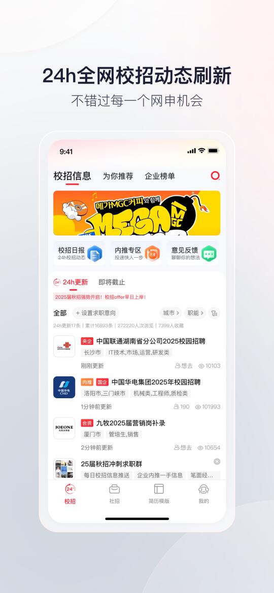 1️⃣24h全网校招动态更新,不错过每一个网申机会