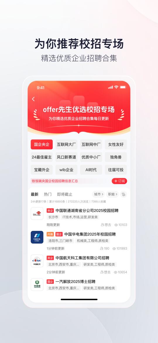 🔎offer先生APP-24h全网校招信息刷新神器,致力于为大学应届生/往届生提供企业校招信息和就业机会,日更100+最新的企业校园招聘信息,帮大家节省搜集信息时间,高效备战春招。欢迎大家下载体验!