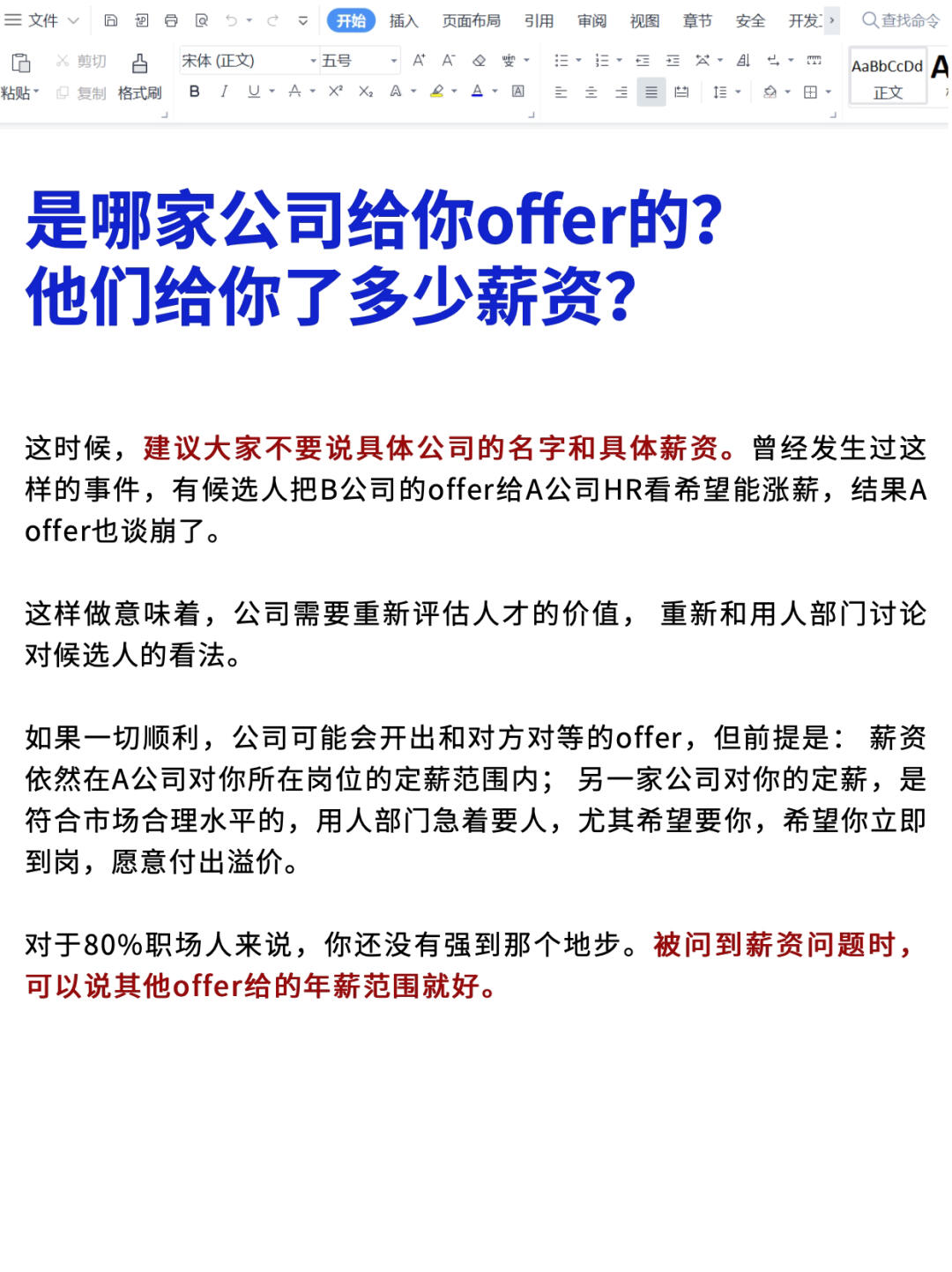 建议大家不要说具体公司的名字和具体薪资,被问到薪资问题,可以说其他offer给的年薪范围就好。