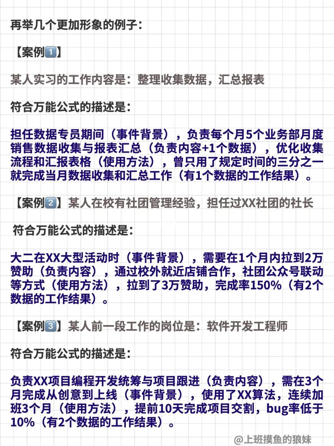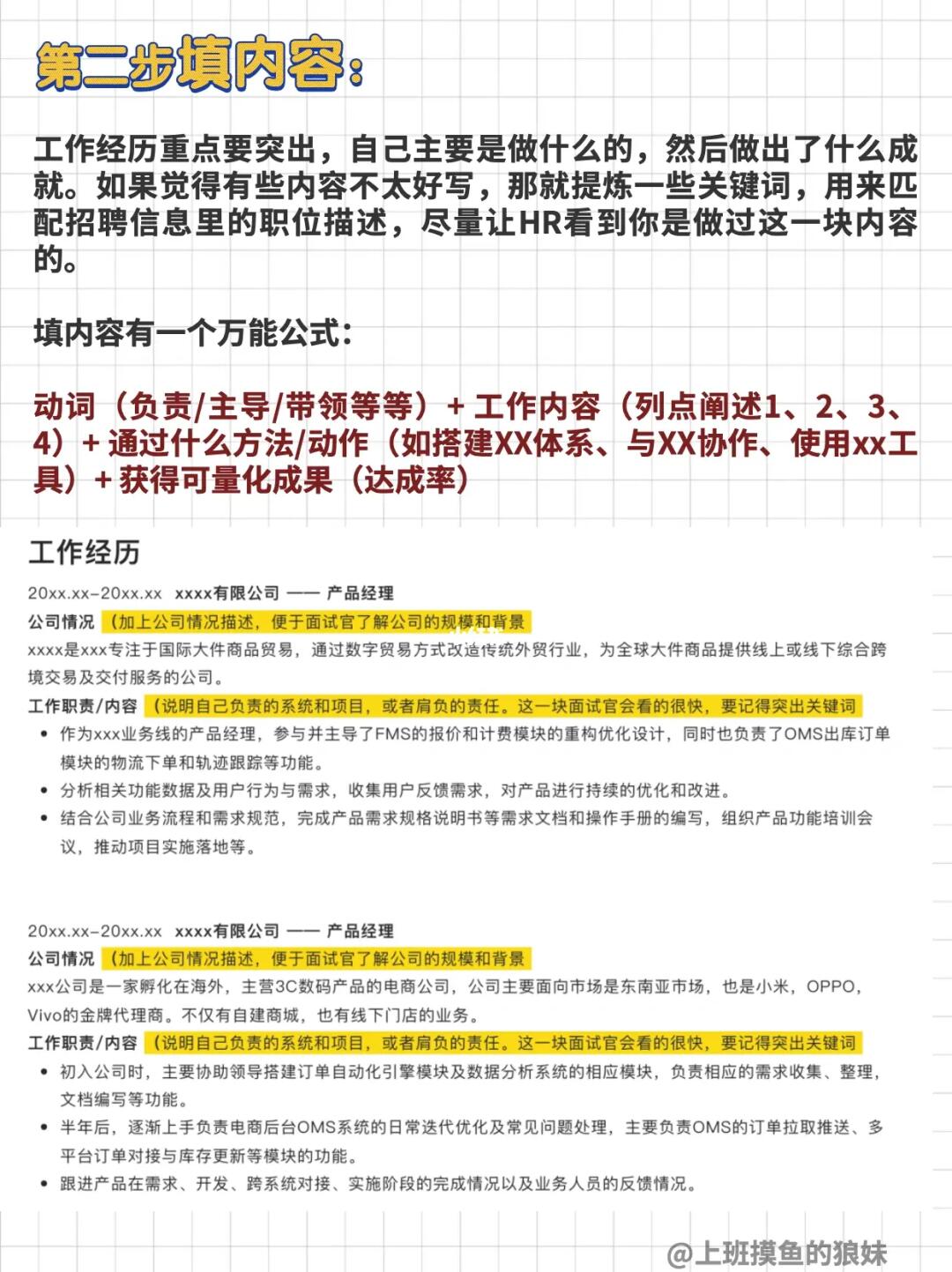 不论你是有了工作经验,还是还没毕业,只要是“经历”类型的内容,都可以使用这个公式来写出漂亮的内容。