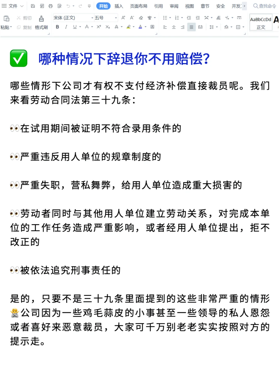 4⃣️哪种情况下辞退你,公司是不用赔偿的