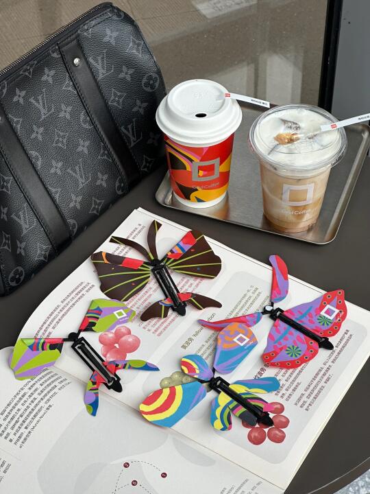有好几种不同颜色的蝴蝶盲袋,玩了一上午了hhh!另外,新品布雷卫半拿铁好喝!浓缩+咸甜味的牛乳,像在吃甜品一样,但是喝起来又不腻!