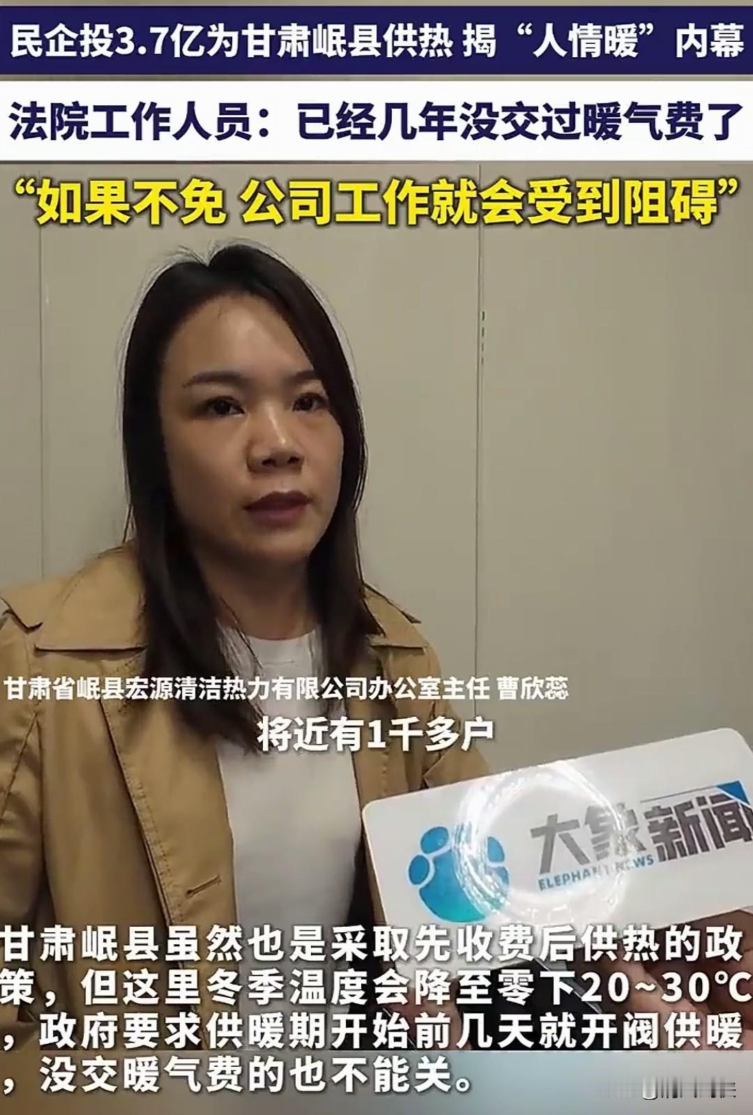 当事人信访件几番辗转到被举报单位, 领导关系上千户无法收费不能断供 此前有大象新闻报道的贵州茅台镇8亿废水处理厂被强行接管,还没有官方最新调查处理进展。大象新闻又出活了,敢于第一个站出来为百姓讲真话,真是良心媒体! 甘肃一供暖企业按照政府招商引资流程,投资3.7个亿创办,经营多年,经营过程中,公司3万多用户有1万户无法收费,其中上千户是涉及领导人情关系,也不能断供。(据企业员工介绍,当地习惯先用后缴费。) 不仅如此,政府向企业提出,要求企业帮助发行债权,入股,收购要求,企业拒绝,政府主管部门以各种理由强行接管企业。企业责任人到省信访办投递上访信件,最后绕了一圈,回到自己要上访举报的单位。 事件的关键点在于:据民营企业负责人猜测,可能是供热专项债引起,本来国家规定这个是用来帮助供暖企业改建节能设施,推动节能环保。现在要发行债权,但是政府没有相关企业,就想到找民营企业,谈帮助发行债权,入股,收购,被拒绝后,就以各种理由强制接管,达到完成发行债权的任务。 当地的招商引资环境真是令人担忧啊! 第一,管事的衙门多,人情关系多,明目张胆的不缴费,企业运营困难。 第二,即便企业正常运营,投诉倒数第二,不依从主管部门要求,可能被接管。有没有可能是挑软柿子捏呢? 第三,举报无门,是不是当地机关存在违规操作?互相庇护。 事情的发展情况还待持续关注,天理昭昭报应不爽,期待有一个好的结局!