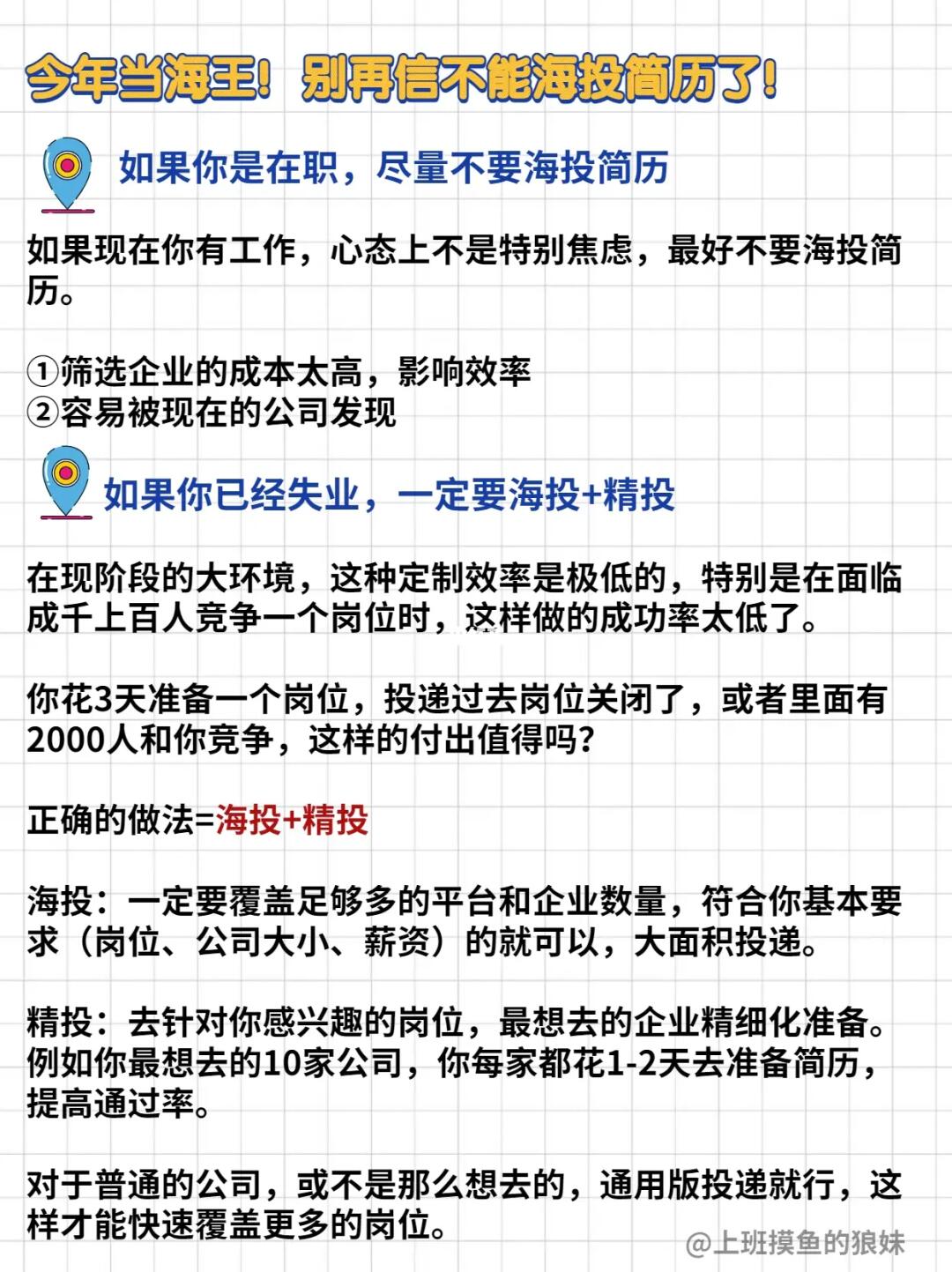 对目前骑驴找马的职场人来说:‼️不要海投简历,一定要谨慎思考,考察好岗位后再投递。