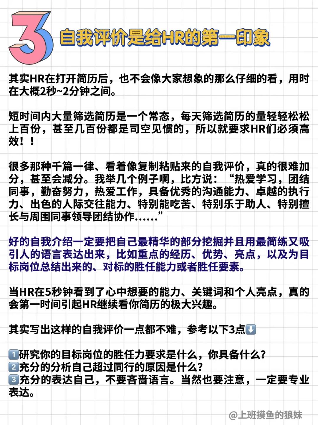 🌟之前写过好多次如何写简历的自我评价,可以具体去参考