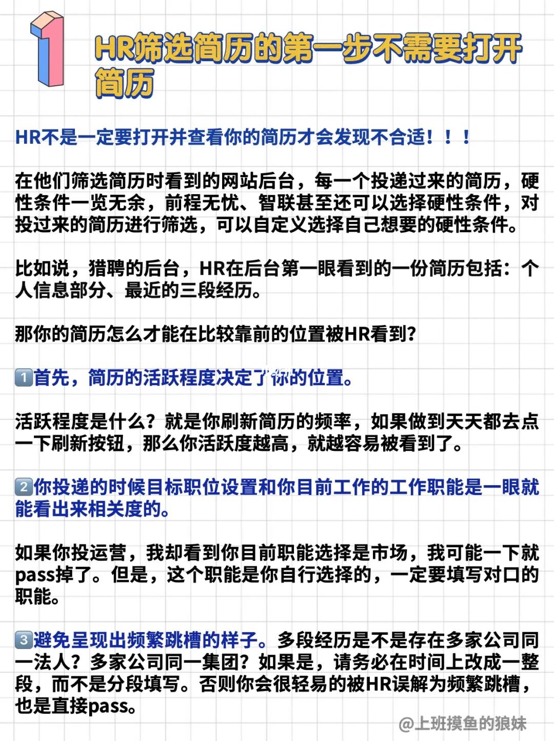 1⃣️你要过的第一关不是hr,是招聘网站。
