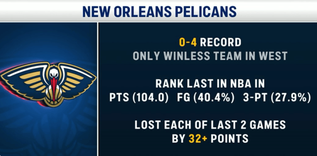 虎扑10月31日讯美媒OhNoHeDidn't今日更新动态,晒出了鹈鹕在赛季开始后至今的一系列数据。