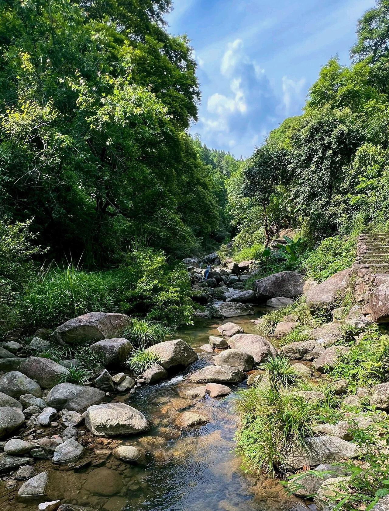 宝子们,本社畜前几天和闺蜜顶着黑眼圈冲进云髻山,结果被狠狠治愈了!原以为是普通爬山,没想到收获了「森林按摩+视觉暴击+美食暴击」三重快乐,攻略赶紧码住! 真实体验:刚进山就被天然氧吧拿捏!深呼吸一口,负氧离子直接往肺里灌,城市里的PM2.5瞬间成过客。爬到半山腰的瀑布群,听着哗啦水声,随手拍了段视频发朋友圈,点赞直接炸了!最绝的是山顶,云海翻涌像棉花糖掉进山谷,我站在观景台疯狂比耶,连恐高症都被治愈了(夸张)。 交通攻略:自驾党狂喜!从深圳出发2.5小时直达,导航「云髻山景区」不迷路。非自驾的宝子,高铁到韶关站后转新丰专线大巴,虽然折腾点,但为了美景值了! $ 省钱姿势:门票30块买不了吃亏,停车费10块随便停!景区里烤肠5块、竹筒饭15块,比景区刺客友好太多!建议自带干粮,山顶野餐氛围感拉满~ 干饭指南:山下农家菜必须冲!新丰云髻山老妈农庄强推紫苏焖鸭,鸭肉吸饱酱汁,连骨头都想嗦两口;竹筒饭带着竹子清香,粒粒分明超有嚼劲。我吃完直接扶墙出,体重什么的,下山再说! 爬山难度预警:全程4小时左右,台阶平缓友好,幼儿园小朋友都能冲(夸张again)!不过后半段有些陡坡,建议带登山杖,不然可能像我一样手脚并用像只猴儿~ 社畜保命Tips: 1.穿防滑鞋!雨后石板路堪比溜冰场